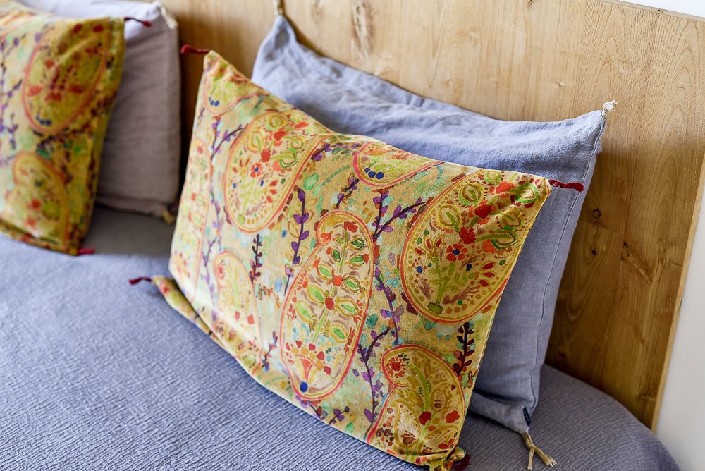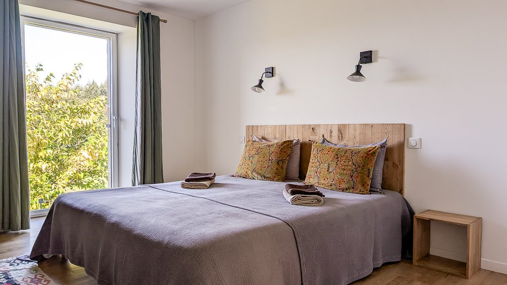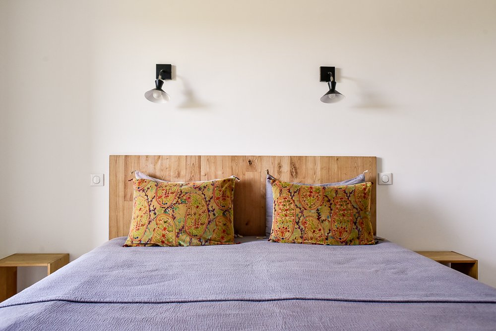 Les chambres de Maison Chalendeix sont une invitation à l’abandon et à la contemplation. Vous vous sentirez bien dans ces grands espaces confortables, baignés de lumière en toutes saisons grâce aux grandes ouvertures qui donnent sur le vallon. La décoration est épurée, ponctuée de touches de couleurs lumineuses apportées par les dessus de lit et les oreillers sélectionnés chez Caravane, et animée ici et là par le mobilier chiné et les vanneries artisanales locales. Chaque chambre possède sa spacieuse salle de bain.