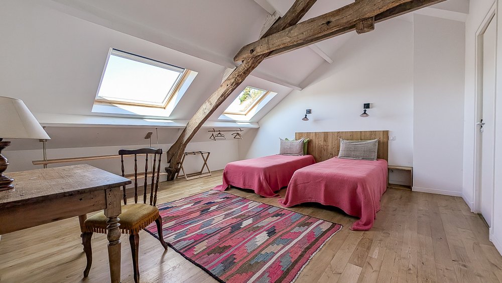 Vous pourrez y admirer la belle charpente d’époque. Un bureau est à disposition pour les hôtes inspiré.es et laborieux.ses.