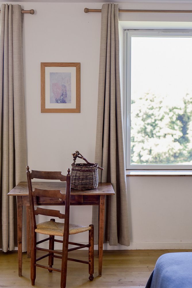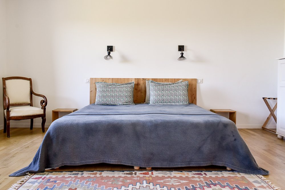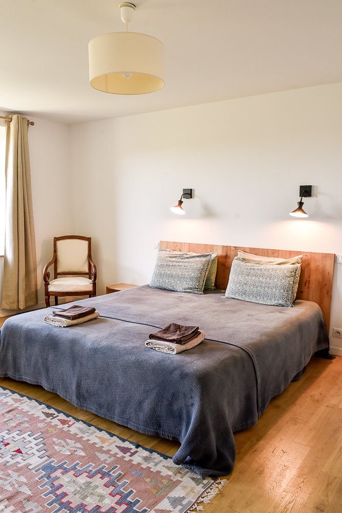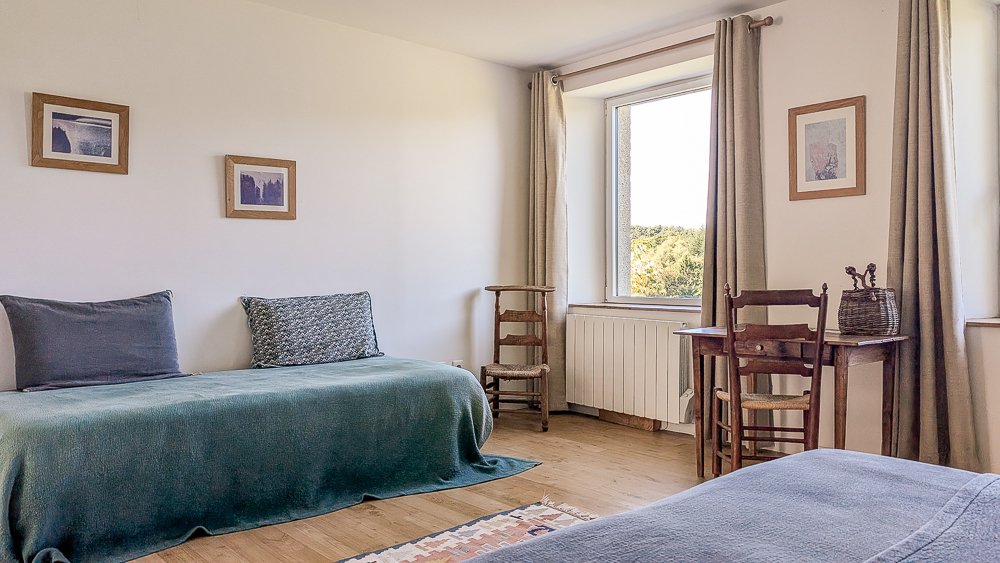 Les chambres de Maison Chalendeix sont une invitation à l’abandon et à la contemplation. Vous vous sentirez bien dans ces grands espaces confortables, baignés de lumière en toutes saisons grâce aux grandes ouvertures qui donnent sur le vallon. La décoration est épurée, ponctuée de touches de couleurs lumineuses apportées par les dessus de lit et les oreillers sélectionnés chez Caravane, et animée ici et là par le mobilier chiné et les vanneries artisanales locales. Chaque chambre possède sa spacieuse salle de bain.