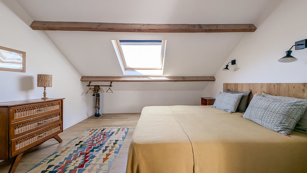 Les chambres de Maison Chalendeix sont une invitation à l’abandon et à la contemplation. Vous vous sentirez bien dans ces grands espaces confortables, baignés de lumière en toutes saisons grâce aux grandes ouvertures qui donnent sur le vallon. La décoration est épurée, ponctuée de touches de couleurs lumineuses apportées par les dessus de lit et les oreillers sélectionnés chez Caravane, et animée ici et là par le mobilier chiné et les vanneries artisanales locales. Chaque chambre possède sa spacieuse salle de bain.