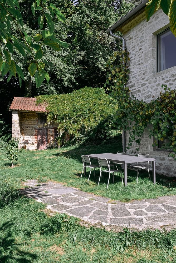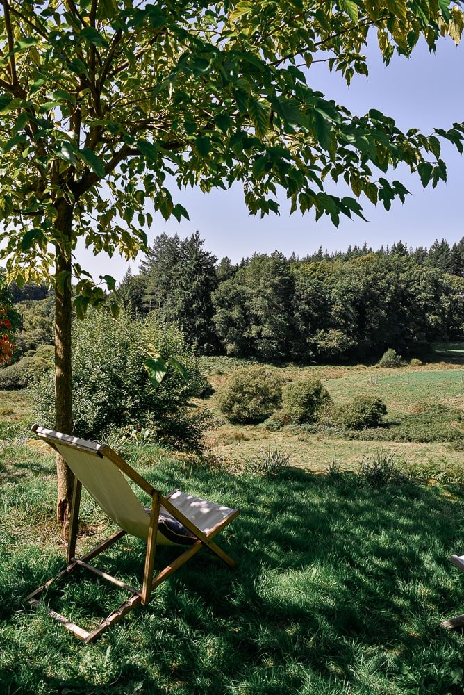 La maison s’ouvre plein ouest sur une terrasse veloutée qui domine forêts et prés, où il fait bon se reposer au soleil en lisant un bon livre ou en sirotant l’apéritif au son du petit ru qui court en contrebas.