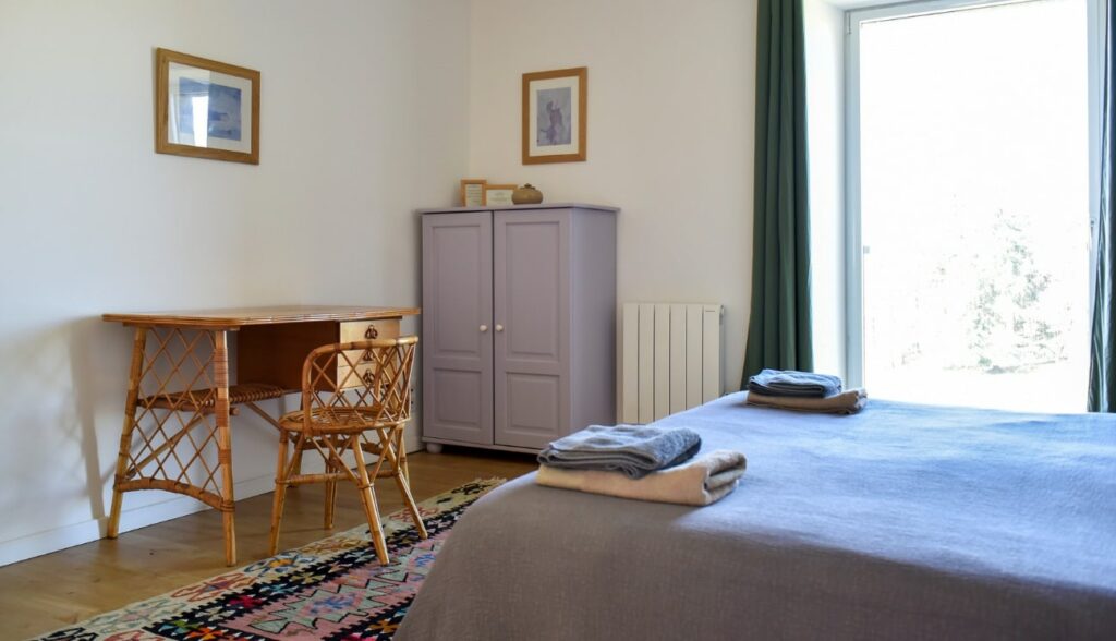 Tous les lits sont des lits simples de 90cm que l’on peut réunir pour former de très grands lits doubles de 180cm. La literie est de qualité. Vos nuits seront sereines et propices aux rêves doux.