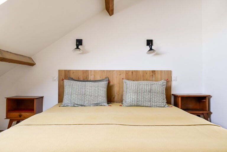Les chambres de Maison Chalendeix sont une invitation à l’abandon et à la contemplation. Vous vous sentirez bien dans ces grands espaces confortables, baignés de lumière en toutes saisons grâce aux grandes ouvertures qui donnent sur le vallon. La décoration est épurée, ponctuée de touches de couleurs lumineuses apportées par les dessus de lit et les oreillers sélectionnés chez Caravane, et animée ici et là par le mobilier chiné et les vanneries artisanales locales. Chaque chambre possède sa spacieuse salle de bain.